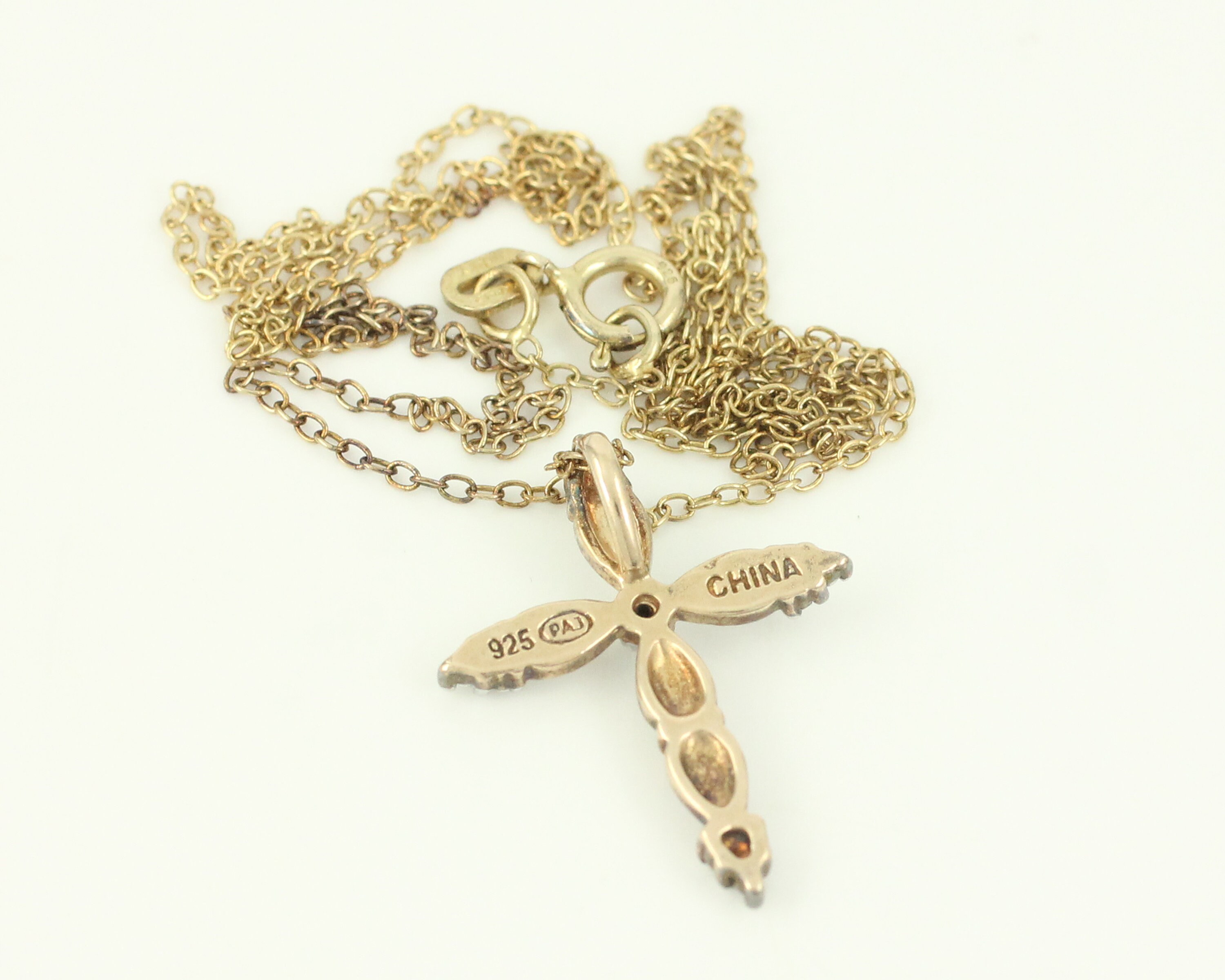 MEASUREMENTS: 5/8" X 7/8" cross on 18" long chain