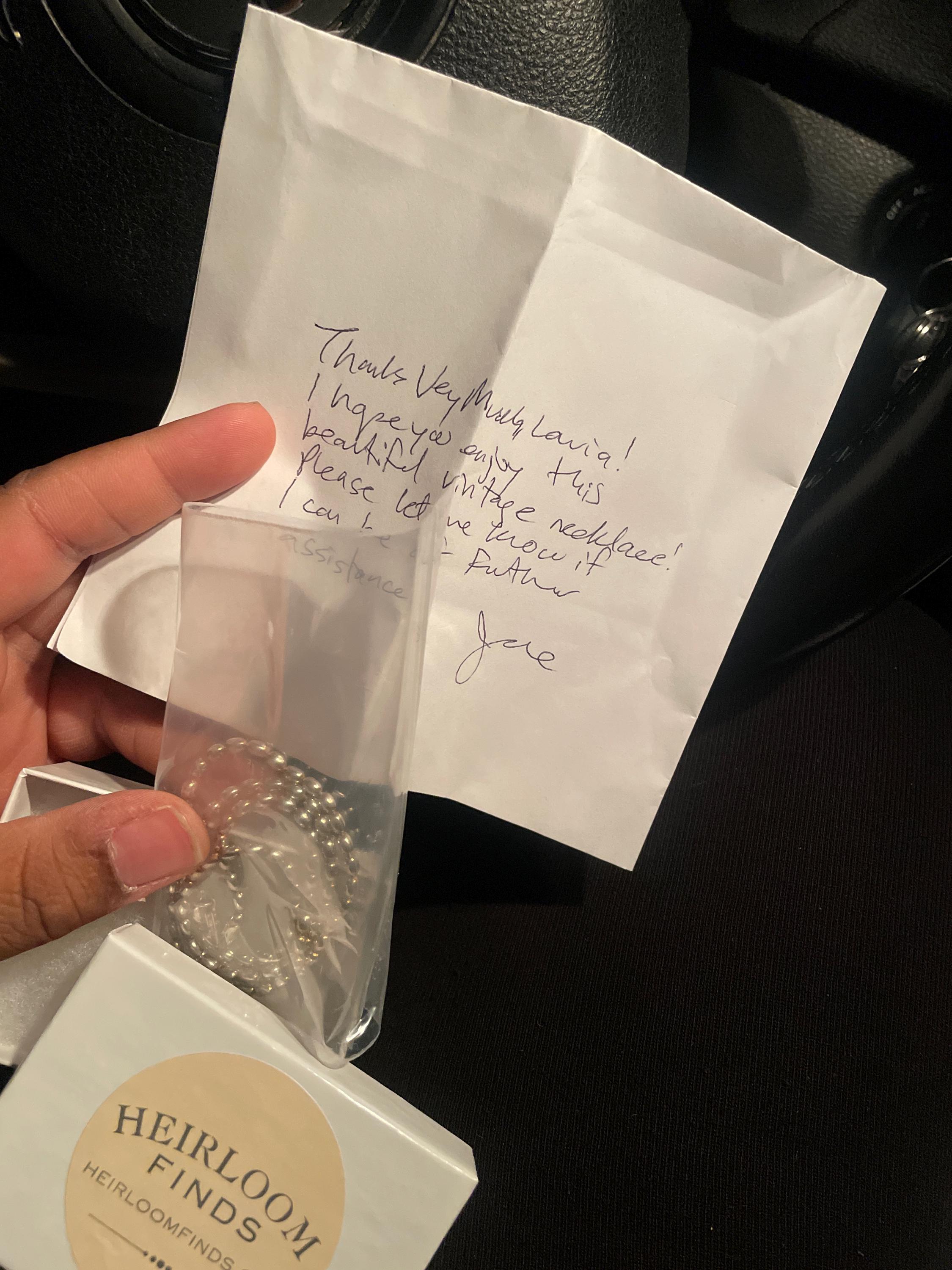 Seller was so nice,sweet,& kind offered for me to return the item if I didn’t like it or it didn’t mean my expectations but. I love it it’s awesome definitely does give a very vintage look. Pretty heavy too. I might add. As she was kind enough to leave this sweet kind note!!! I will be shopping again😩💕thanks hun!!!
