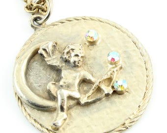 Vintage Aurora Borealis Intaglio Pendant Necklace: 1960s Reverse Cameo