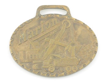 Vintage Marion Power Shovel Brass Fob: 1940s Construction Advertising Collectible